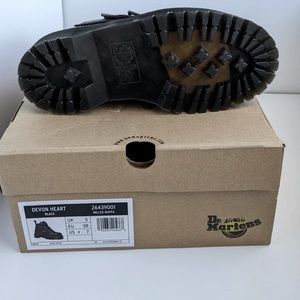 It's back. And it's louder than ever. Sitting on a towering 1 7/8 inch platform sole, the new Devon Heart boot nods with DIY-inspired detailing. Decked out with two straps woven and standout heart-shaped buckles, the boot is built from fine-grained Milled Nappa — a hardwearing pebbled leather. Fitted with a padded tongue and quarters for additional comfort, the platform boots are finished with yellow welt stitching and a black and yellow heel loop.
