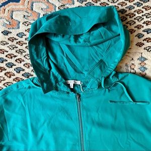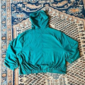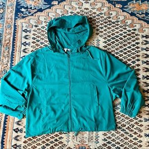 NAKED ZEBRA LIGHTWEIGHT TEAL HOODED SILKY CROPPED JACKET