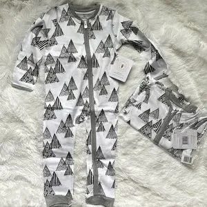 2 brand new rompers in packaging with tags. Zip from bottom to top. Soft organic cotton. 24 months.