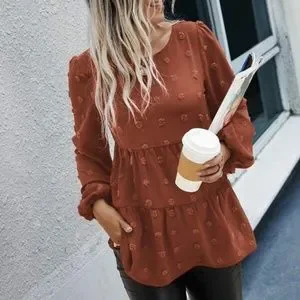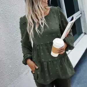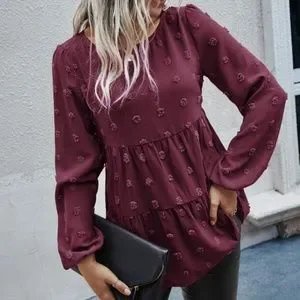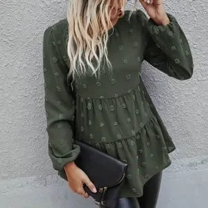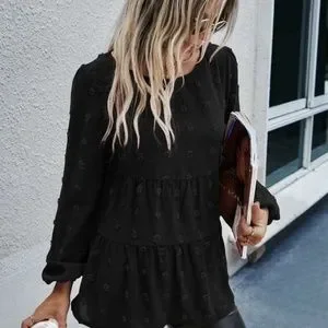 Classic Navy Blue Swiss Dot Ruffle Top Minimalist