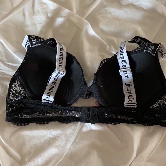 Black Lace Juicy Couture bra. Adjustable strap. Classic Black and white straps, underwire, padded. Size 34B