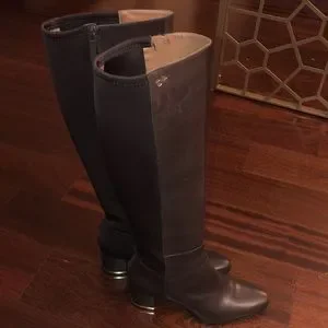 Inch and half heel. Work only twice. Stunning brown. Size 6.5. “Leather and fabric upper”