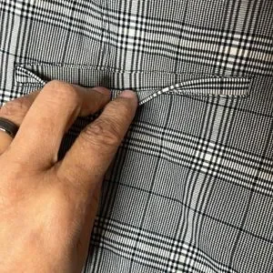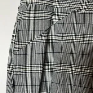 checkered pants; 2 back fake pockets; stretch; white and black coloring; full elastic waistband