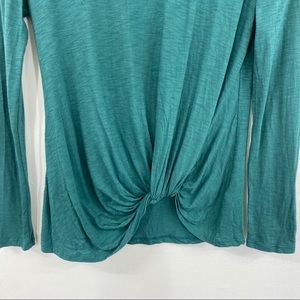 BP. Long sleeve t-shirt in a gorgeous peacock green color. Long sleeves. Twist knot at front. Soft material.