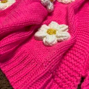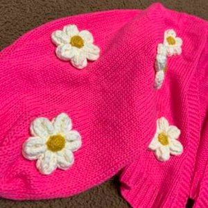 Hot Pink Floral Bishop Sleeved Sweater Cardigan
