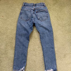 In excellent condition. Distressed hems were intentionally designed. Best seller style of Agolde. I still love these jeans so much but size doesn’t work for me.