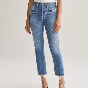 Agolde Riley medium blue cropped high-rise straight-leg crop organic jeans 23