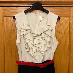 Emma & Michele Black and Cream Ruffle Chest Knee Length Dress with Red Belt