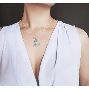 NEW Kitty Cat Pendant Necklace Crystal Rainbow Sparkle Pendant with Chain J103