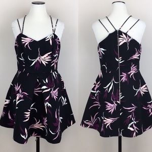 adorable NWOT never worn Keepsake dress. black with purple and white and blush flower detailing. perfect for a wedding or shower. brand sold on revolve, bloomingdales, shopbop, anthropologie