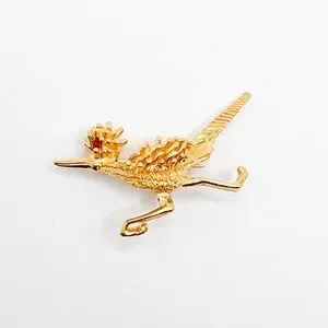This cute goldtone guy has a red rhinestone eye and measures 1.5” x 1”. It is unmarked with the tiniest pinhole of finish loss on his front leg.