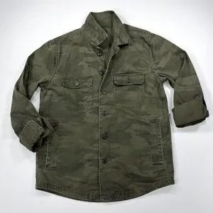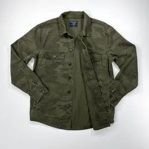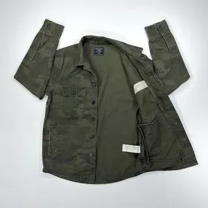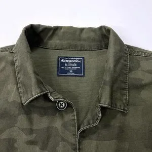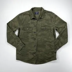A&F Men's XS Military Shirt Jacket Army Green Camo Button Down Cotton Shacket