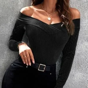 Army Green Off Shoulder Ribbed Fitted Sexy Top