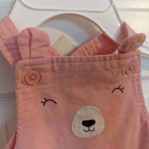 So adorably sweet! This pink corduroy jumper from Just One You by Carter's features a bear's face front and center, and is adorned by buttons -- and its cute little ears pop above the top buttons. EUC. So cute! 100 percent cotton. When lying flat, the jumper is 9 inches across at the armpits and is 12.5 inches long.