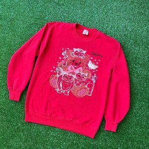 SUPER RARE CAT CALIFORNIA PRINT 90S VINTAGE FLEECE SWEATSHIRT