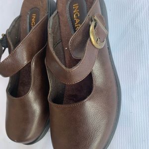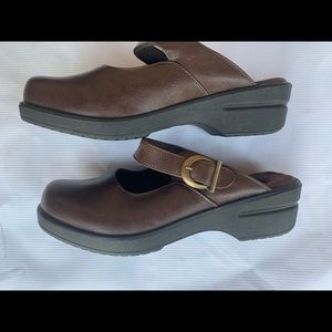 Ingaro Brown Clogs No Back Buckled Women's Faux Leather 6.5 Slip Resistant Shoes.