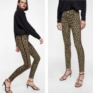 Zara woman high rise leopard animal print red velvet trim skinny jeans 2 in excellent condition,no flaws. These are such a great addition to any closet, simply pair with a black sweater or T-shirt for a simple but stylish look. Please refer to photos for measurements and details