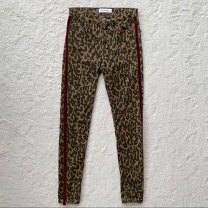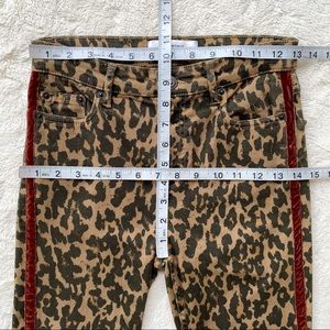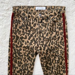 Zara woman high rise leopard animal print red velvet trim skinny jeans 2