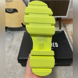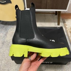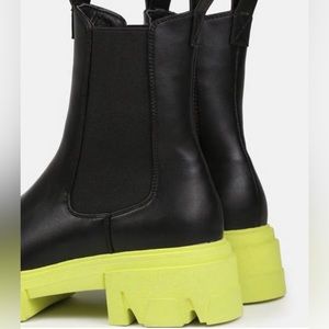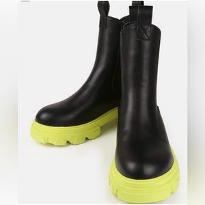 NIB Women Size 6 Contrast Sole Chunky Mid Ankle Boots In Black With Lime Soles