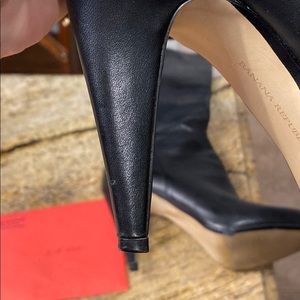 Black leather knee high boots with gold zippers. Purchased and worn a handful of times and in great condition.
