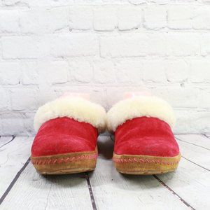 LL BEAN Women’s Squam Lake Red Suede Shearling Wicked Good Slippers Size 9 M