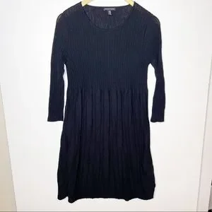 Eileen Fisher Washable Wool Ribbed Pleated Shift Dress Fit and Flare Long Sleeve
