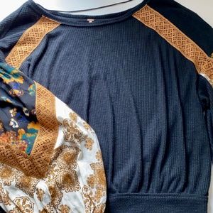 Free People Casual Clash Long Sleeve Shirt- Black- Size M