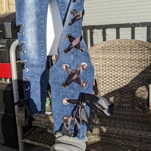 From Paris. NWT, never been worn. Laces up ankle and calf. Super cute and stylish. First and last photos are for style reference. All other photos are of the actual jeans for sale.