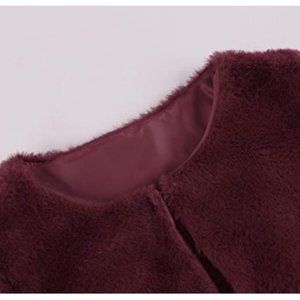 Material: Faux fur. The material is soft, warm, breathable and great for work and casual wear.