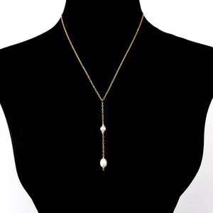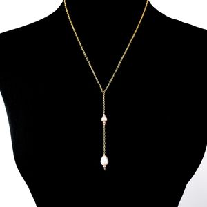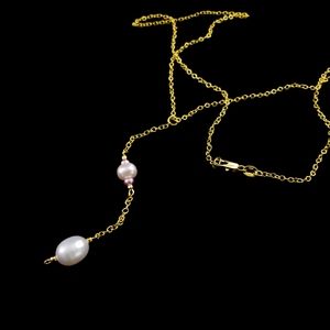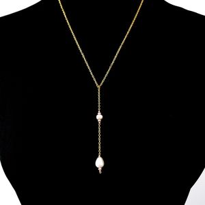 Y necklace real pearls drop pendant genuine pearls 18k GP chain white cream