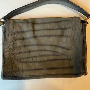 100% authentic - I purchased this from the YSL store in NYC and only wore on special occasions a handful of times. Excellent condition!! This stunning handbag is crafted of anthracite gray crocodile skin embossed nubuck leather. The bag features a looping leather top handle and polished brass hardware. There are three gussets and the top opens to a black satin interior. This is a marvelous bag for day or evening from Yves Saint Laurent! I don’t have the box or dust bag any longer.