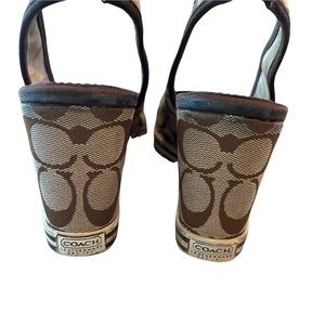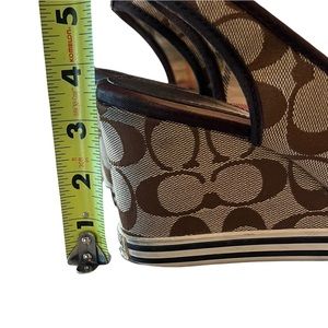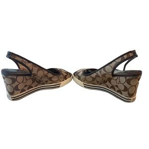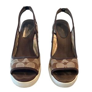Women’s Genuine Coach Sydney Monogram Peep Toe Wedges 8.5 Brown Tan