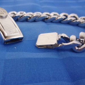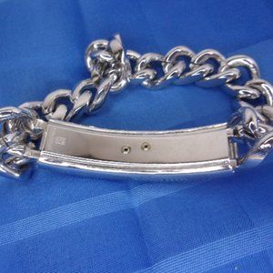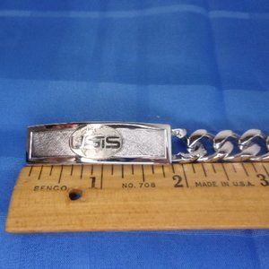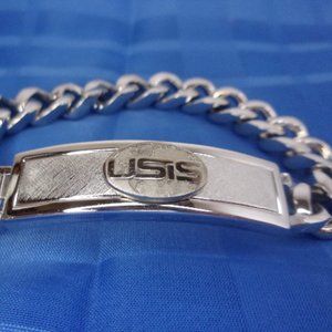 Speidel signed USIS logo ID bracelet, silver tone, about 8" long, nice used condition, marked Speidel USA and with an arch shape with STE, a crooked S under that and TA under that, great looking collectible bracelet.