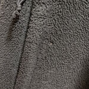 Pre-loved Black Women's North Face Full Zip Jacket. Features two zippered side pockets and one zippered breast pocket. Small barely noticeable imperfection by right side pocket, shown in final picture.