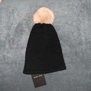 Gigi Pip black beanie pink Pom
