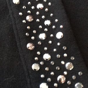Express black top with jewels on the collar. They go all around to the back too. Cap sleeves snd gathered at the chest. Worn once!