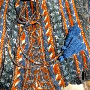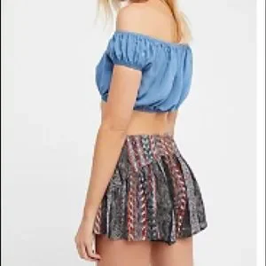 Free People grey blue and rust colored bohemian shorts. Lace up front with tassel tie. Never worn size 2.