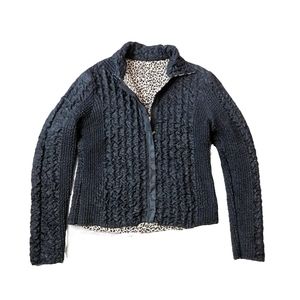 UBU $100 Womens L Black & Leopard Reversible Zip Up Jacket
