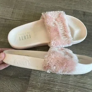 Used puma baby pink fur Puma Fenty slides. Size 4 but fit a size 6.5-7 women’s