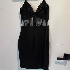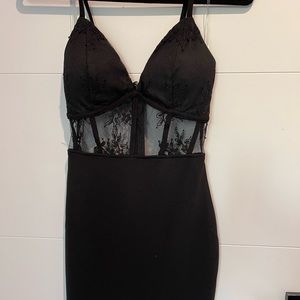 Gorgeous mini dress perfect for that Little Black Dress moment! Beautiful lace and corset detail, with built in padded bra, adjustable straps and comfortable stretchy material. Shows off all your curves, and gives a push up bra look. Really well made, never worn with tags attached Zero imperfections or stains.