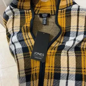 JONES NY SIGNATURE ACCESSORIES TOP. COLOUR - TARTAN PLD MUSTARD. SIZE- L / XL