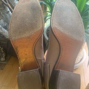 Taupe Chloe genuine leather boots. Made with the softest, smoothest pebbled leather. They place mid-calf, In great condition with a tiny mark but nothing significant. The wooden heel is in great condition. Buckle on right boot is placed looser then the left and can hang even lower on heel should you like.•
