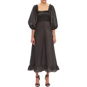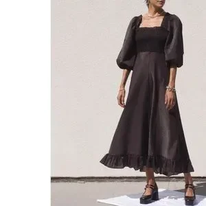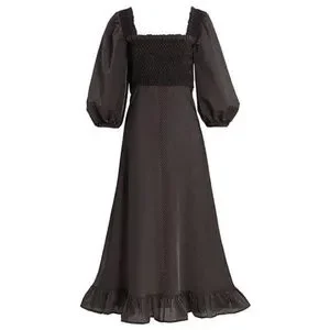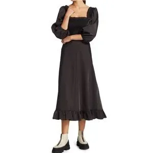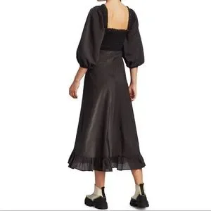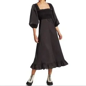 NWT ๐ค GANNI Seesucker Puff-Sleeve Midi Dress