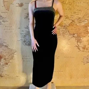Late 80s velvet Jump apparel dress. Sparkly spaghetti straps. In great condition. Sized a 7/8 but fits a small/XS best. Comment with any ?’s