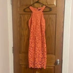 Coral pink crochet-lace midi dress. Lulus size XS with tags