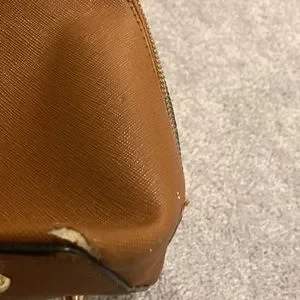 There is some peeling on the outside of the bag near the bottoms and the handles and it did get somewhat flat from being stored away from inside of a bin and barely used, but once it gets filled up it should be okay! It does however, still have lots of life left to it! ππ»