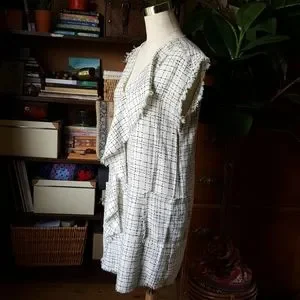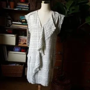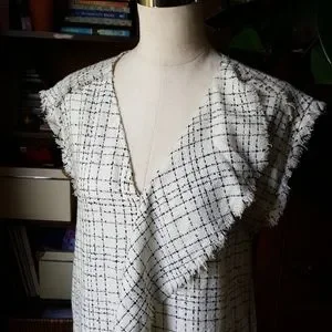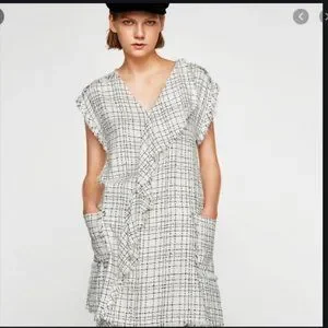 Zara Tweed Asymmetric Ruffle Dress V Neck Pockets