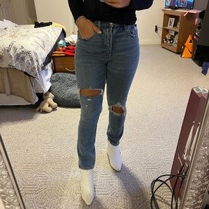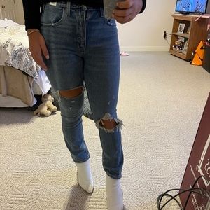 Abercrombie & Fitch High Rise Mom Jeans - Medium Wash, Ripped