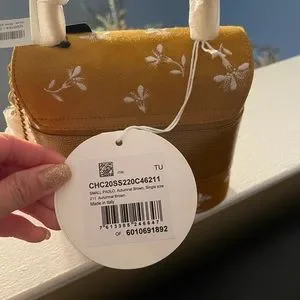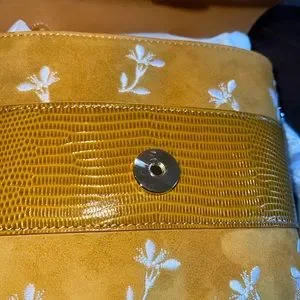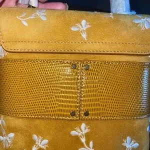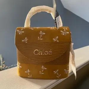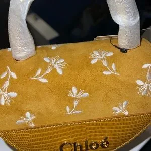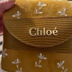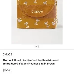 -Chloé's 'Aby Lock' bag is designed in a compact, boxy shape that resembles a padlock. This 'Autumnal Brown' iteration is made from suede embroidered with pretty white flowers and has a lizard-effect leather panel running through the middle. -Carry yours by gold-tone top handle or detachable chain shoulder strap.