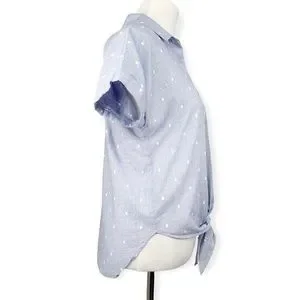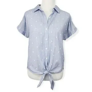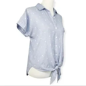 Anthropologie Cloth and Stone Clip Dot Button Down Short Sleeve Tie Front Top